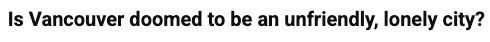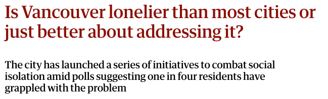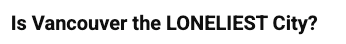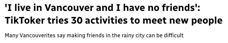 This is a brand new term that I stumbled upon while researching about this topic. Isn't it so fascinating that Vancouverites have the reputation of being flakey and yet, so many people in the city are feeling social isolation?